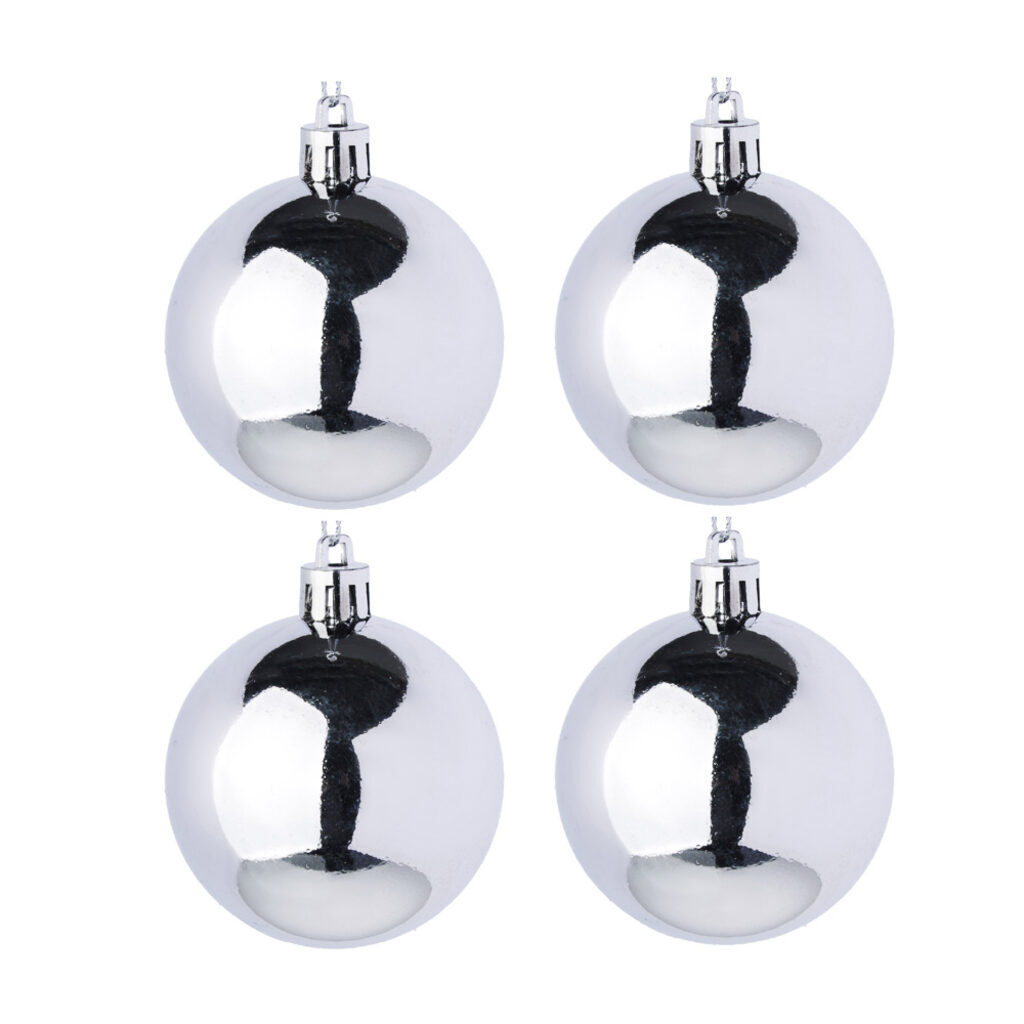 Набор елочных шаров 8 см, 4 шт., серебро, пластик