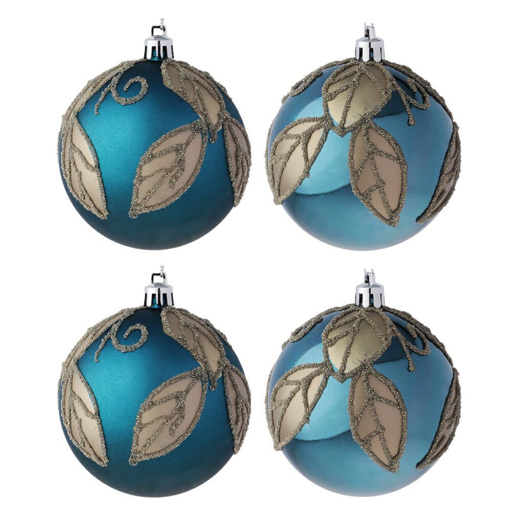 Набор елочных шаров 8 см, 4 шт., золото/синий, пластик