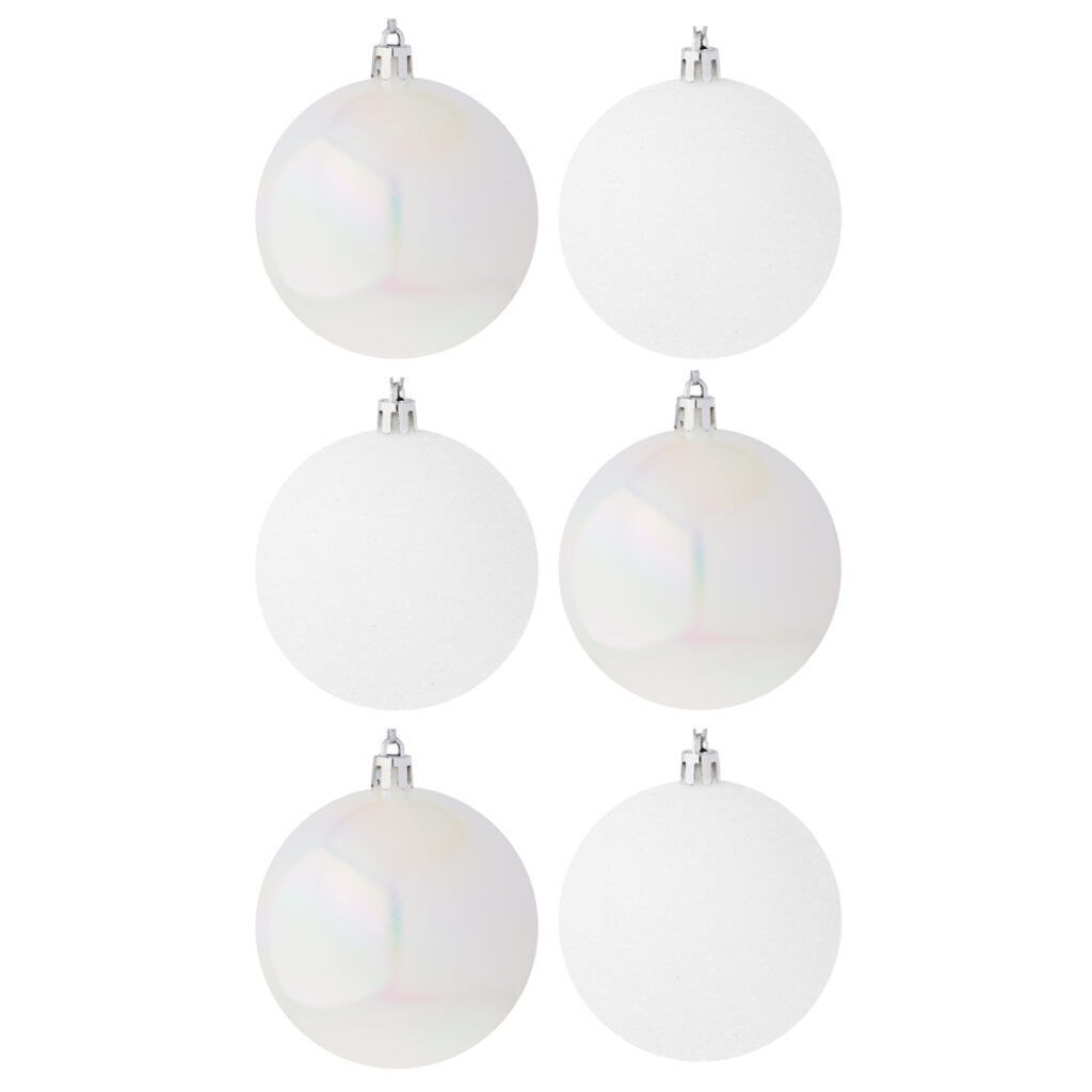 Набор елочных шаров 8 см, 6 шт., белый, пластик