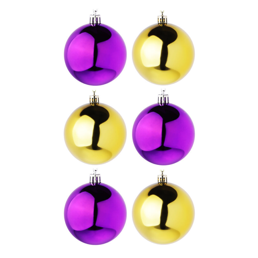 Набор елочных шаров 8 см, 6 шт., фиолетовый/золото, пластик, в тубе