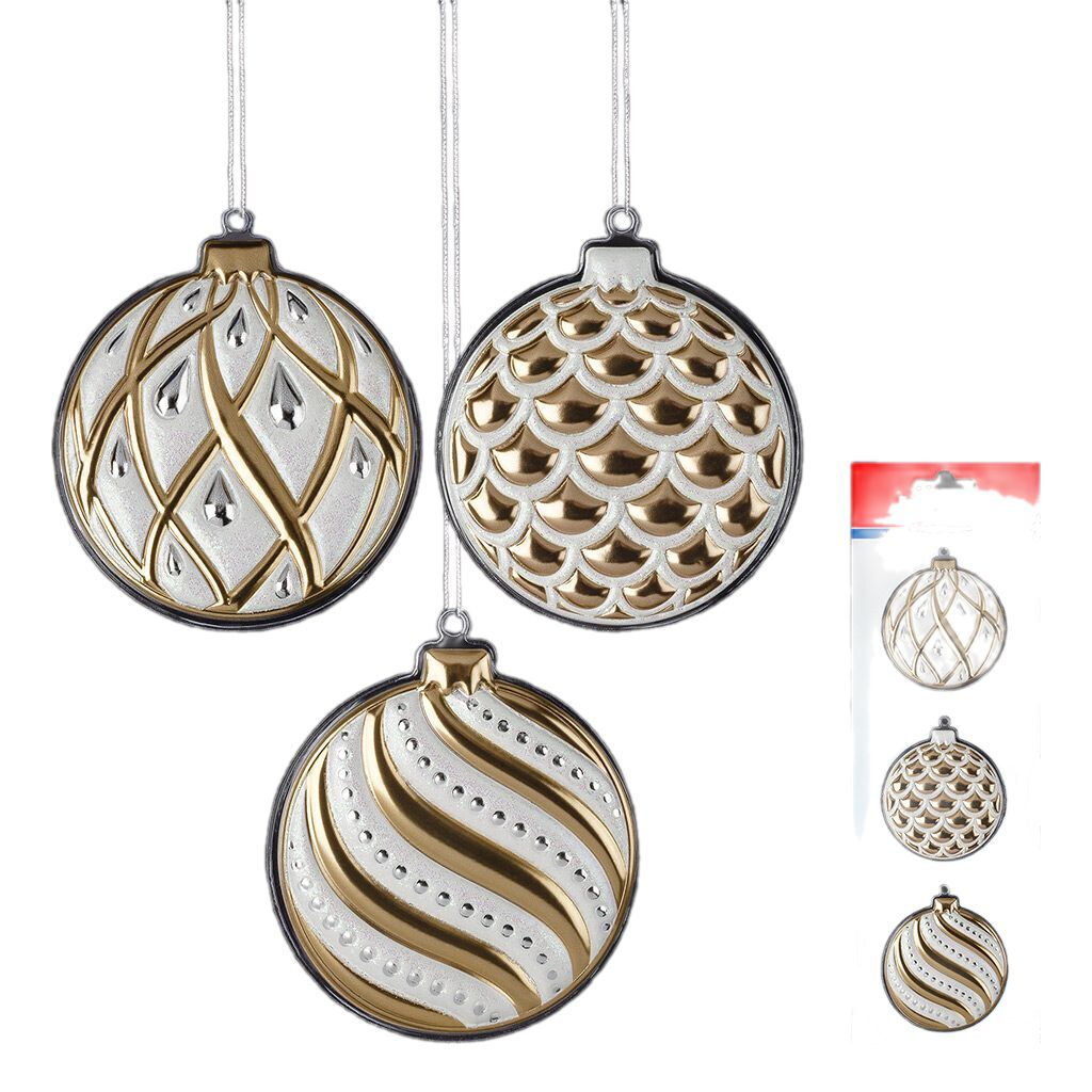 Набор состоит из объемных украшений с фольгированным покрытием. Задняя сторона изделий прозрачная. Изделия имитируют классические елочные игрушки. Хорошо смотрятся на елках разного размера. Подходят для оформления интерьера дома, коммерческих и детских учреждений. Украшения из ПВХ не требуют особых условий хранения и ухода, занимают мало места. Безопасно в использовании. Упаковка (10.5х30 см) - картонная подложка с европодвесом в полибэге высокого качества.