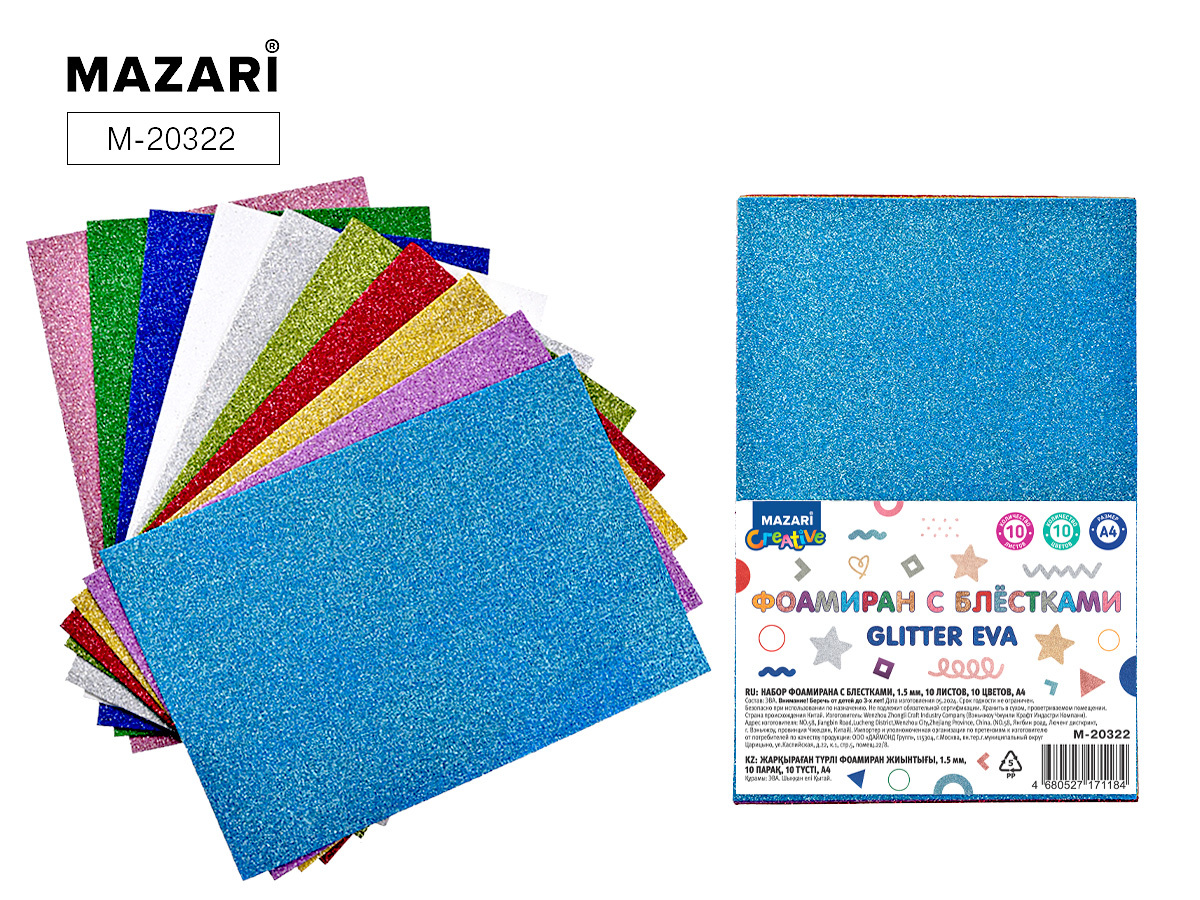 Набор фоамирана А4 10л., 10цв., 1,5мм с блестками