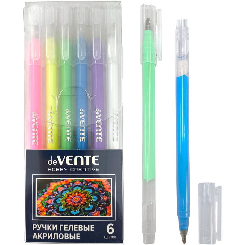 Набор ручек гелевых акриловых "deVENTE. HOBBY CREATIVE" 06 шт, 6 цветов, d=1 мм, прозрачно-матовый круглый корпус, колпачок с клипом, увеличенный запас чернил, специальные акриловые чернила c высокой яркостью на черной бумаге, в пластиковой коробке