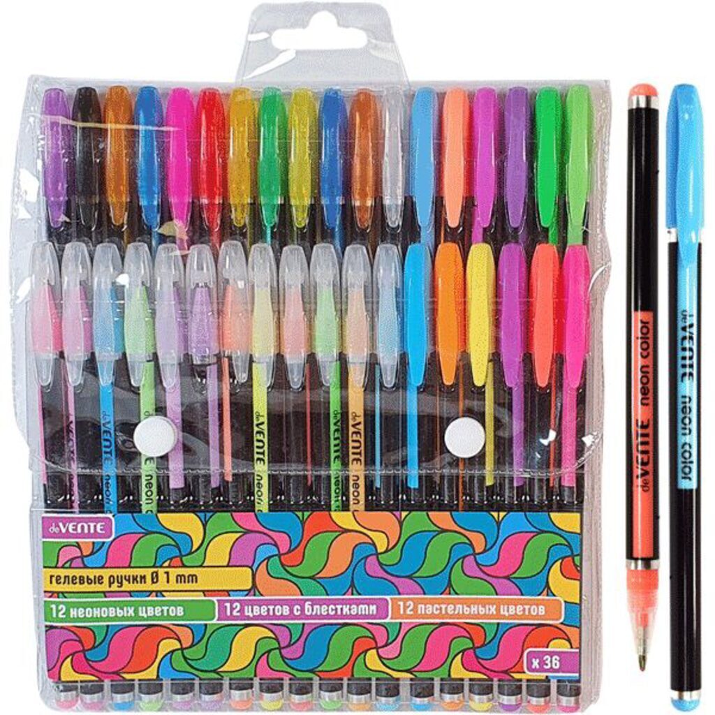 Набор ручек гелевых "deVENTE. Neon Black" 36 цветов, d=1 мм, черный корпус с цветными полосами, сменный стержень, в пластиковом блистере