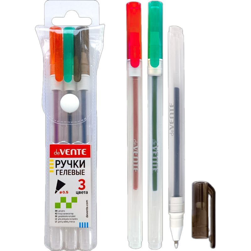 Набор ручек гелевых "deVENTE. Hit" 03 шт, 3 стандартных цвета, d=0,5 мм, прозрачно-матовый корпус, сменный стержень, в пластиковом блистере