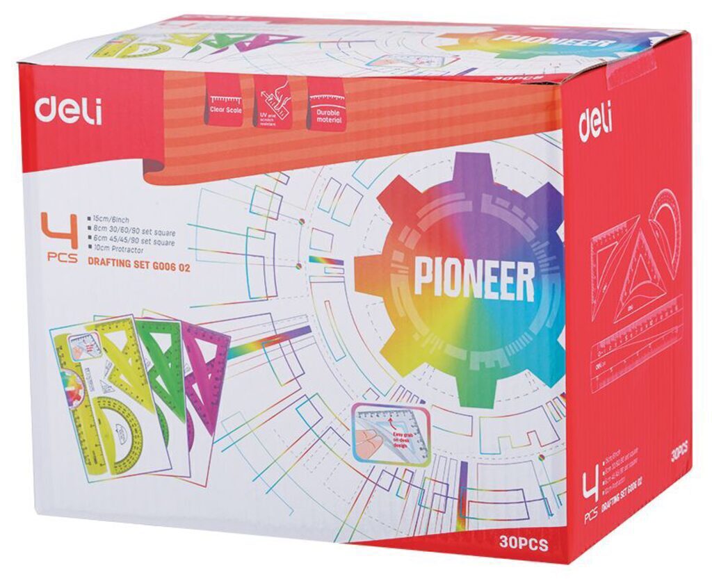 Набор геометрический. Удобно брать со стола. Яркие флуоресцентные цвета. Точное измерение благодаря качественной разметке шкалы. УФ нанесение защищает разметку шкалы от стирания. Комплектность: линейка 15 см с двухсторонней градуировкой см/дюйм , 2 треугольника с двойной градуировкой 30 градусов - 8 см и 5см, 45 градусов- 6 см и 6см, транспортир - 180 гр. Цветной полупрозрачный пластик. Набор укомплектован в одной цветовой гамме. Ассортимент наборов 3 цвета. Индивидуальная упаковка набора с европодвесом.