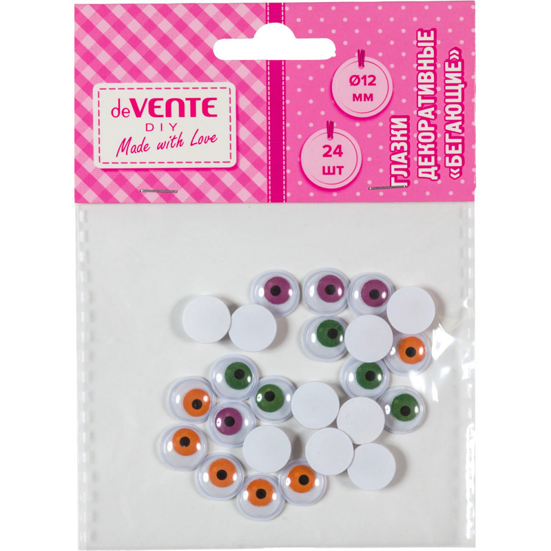 Глазки декоративные "deVENTE" 24 шт, 12 мм, круглые пластиковые, самоклеящиеся, с подвижной вставкой, ассорти цветов в пластиковом пакете с блистерным подвесом