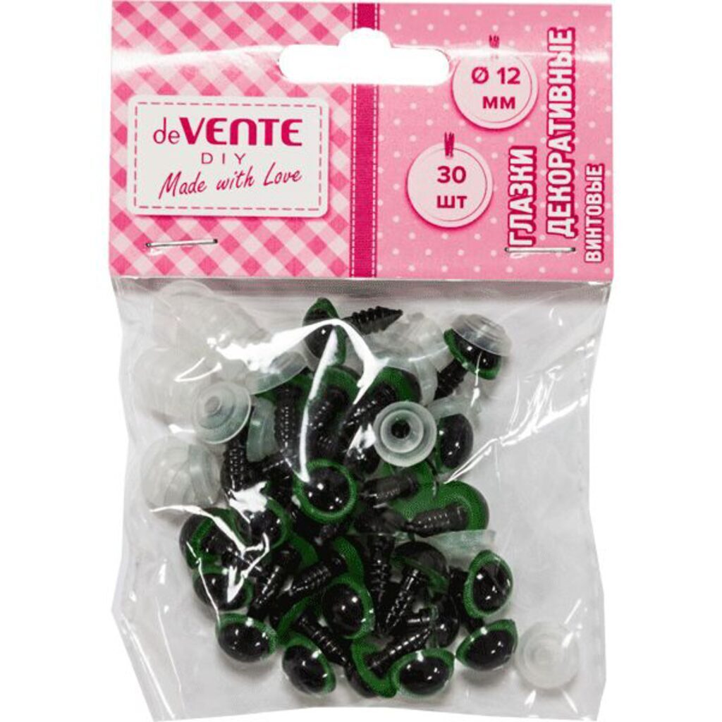 Глазки декоративные "deVENTE" круглые пластиковые, винтовые с фиксатором, 30шт, 12 мм, зеленые в пластиковом пакете с блистерным подвесом
