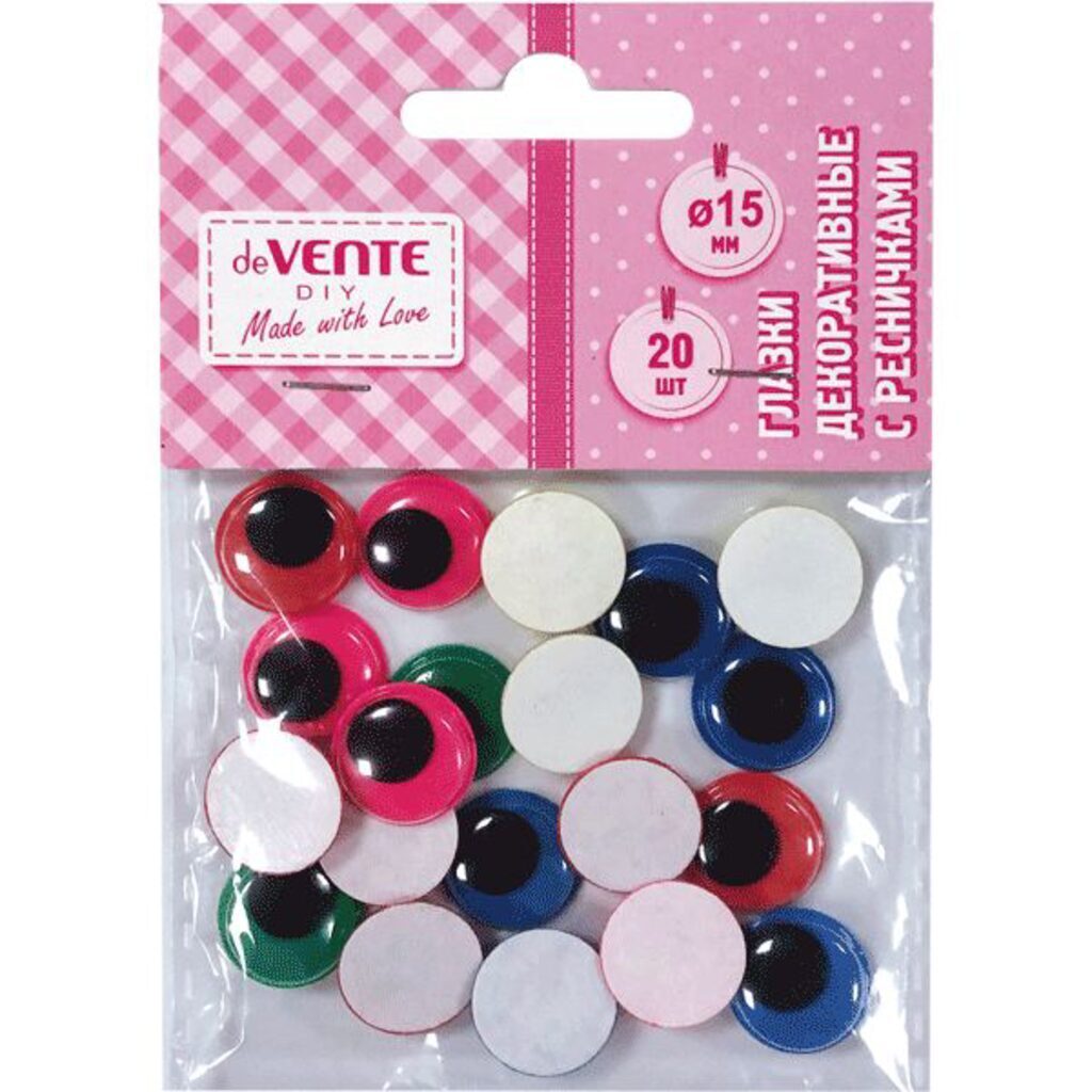 Глазки декоративные "deVENTE", пластиковые, самоклеящиеся, d=15 мм, 20 шт в пластиковом пакете с блистерным подвесом, цвет ассорти