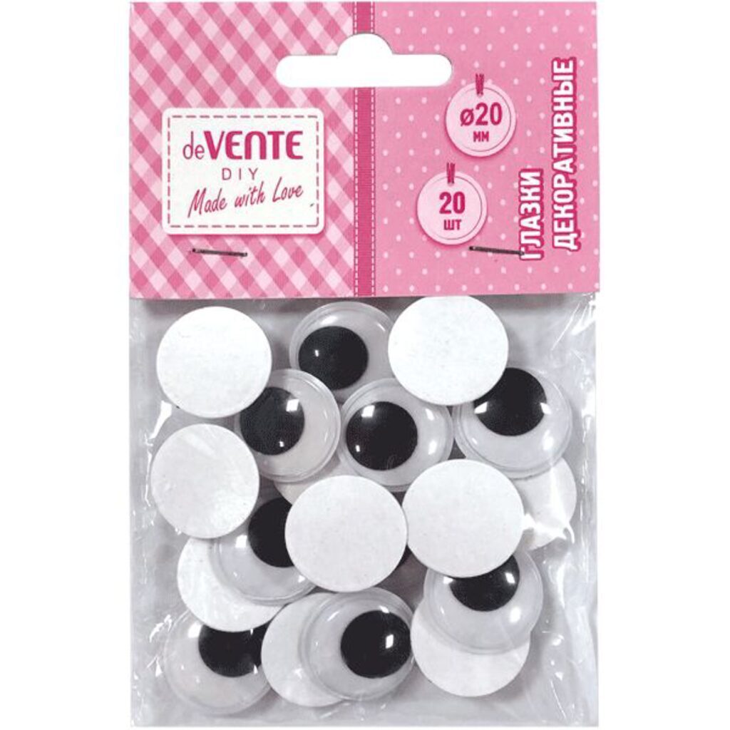 Глазки декоративные "deVENTE", пластиковые, самоклеящиеся, d=20 мм, 20 шт в пластиковом пакете с блистерным подвесом, черные