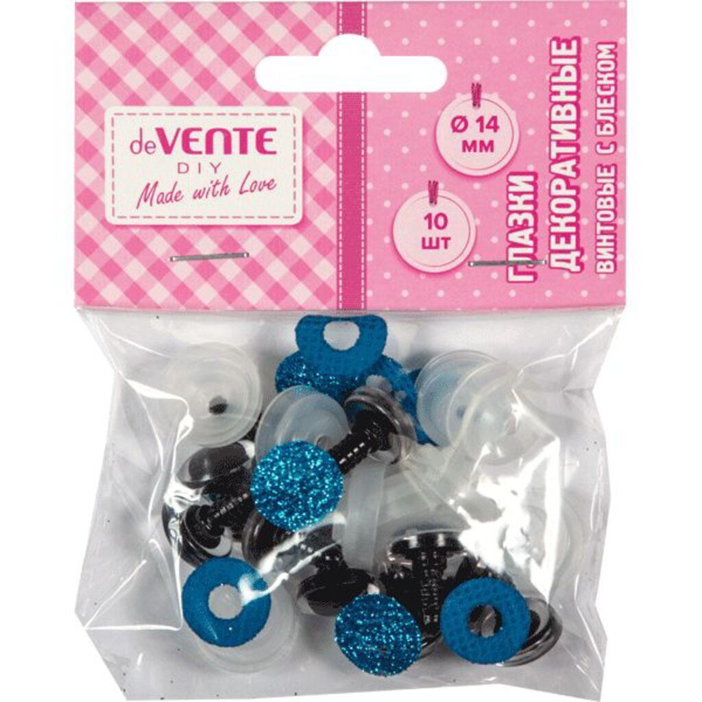 Глазки декоративные с блеском "deVENTE. Shine" 10 шт, 14 мм, круглые пластиковые, винтовые с фиксатором и блестящей вставкой, голубые в пластиковом пакете с блистерным подвесом