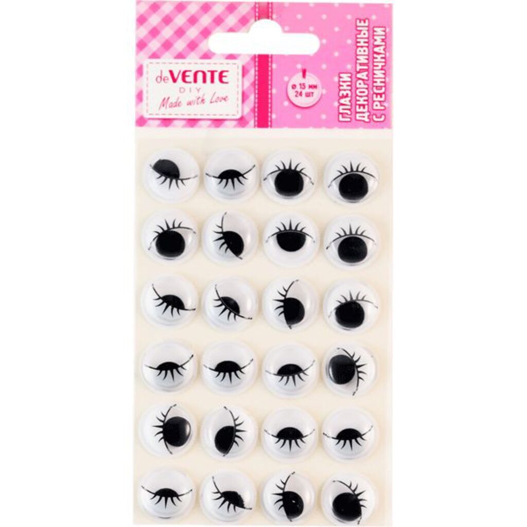 Глазки декоративные "deVENTE" круглые пластиковые, с ресницами, цвет черный, 15 мм, 24 шт в пластиковом пакете с блистерным подвесом