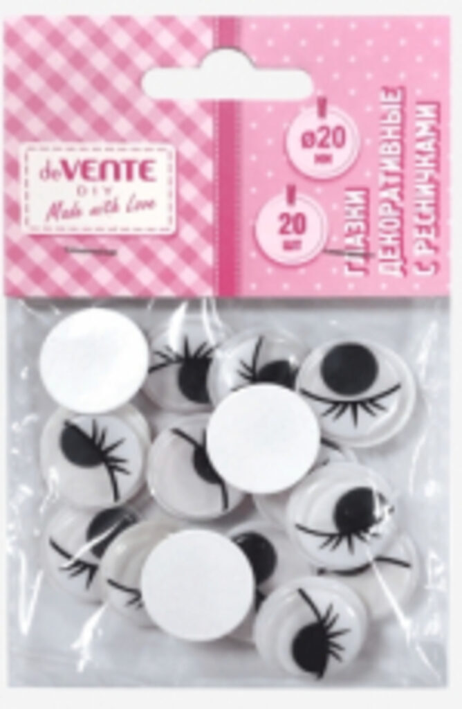 Глазки декоративные "deVENTE" с ресничками, пластиковые, самоклеящиеся, d=20 мм, 20 шт в пластиковом пакете с блистерным подвесом, черные