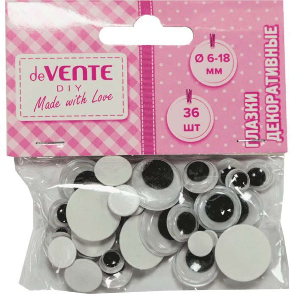 Глазки декоративные "deVENTE" круглые пластиковые, самоклеящиеся, цвет черно-белый, 36шт, размер 6 мм, 8 мм, 10 мм, 12 мм, 15 мм, 18 мм в пластиковом пакете с блистерным подвесом