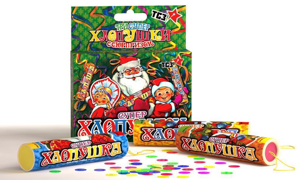 Набор хлопушек "Супер" 80*105мм разноцветное конфетти 3шт/уп