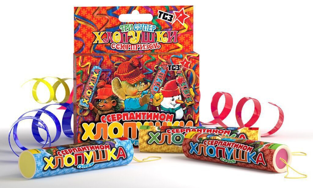 Набор хлопушек "Супер с серпантином" 80*105мм разноцветный серпантин 3шт/уп