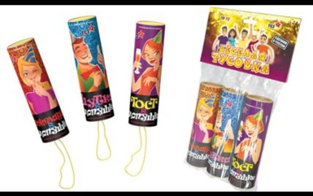 Набор хлопушек "Весёлая тусовка" 80*105мм разноцветный серпатин и сюрприз 3шт/уп