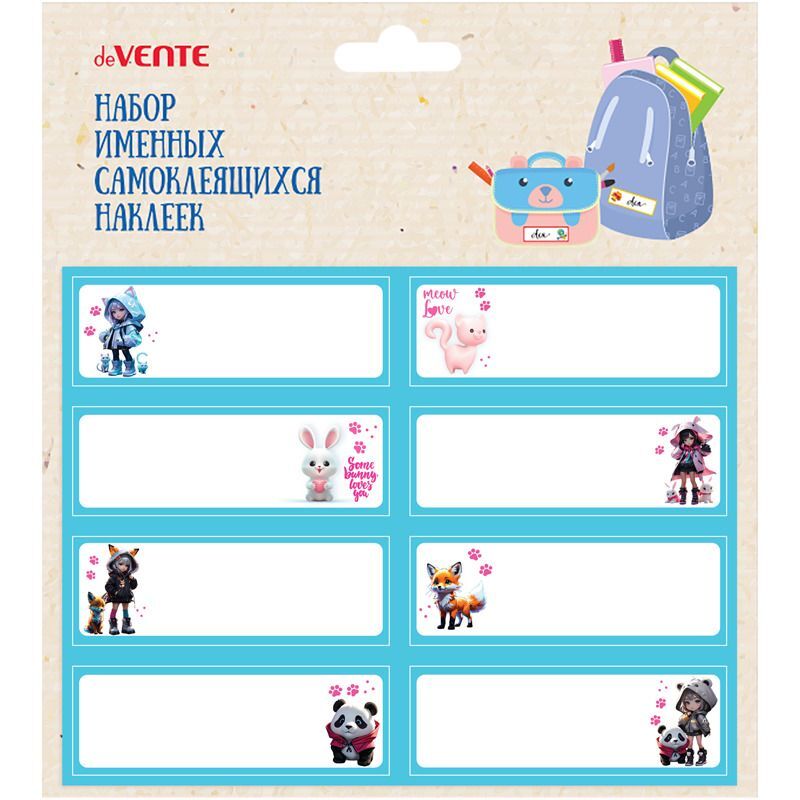 Набор именных самоклеящихся наклеек на бумажной основе "deVENTE. Korokoro" 61x21 мм, 8 шт, в пластиковом пакете с подвесом