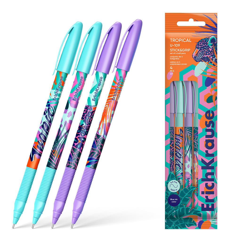 Треугольная шариковая ручка Stick&Grip с игольчатым типом пишущего узла и уникальной технологией Ultra Glide. Ручка имеет непрозрачный корпус с оригинальным дизайном Tropical с удобной профилированной грип-зоной из резины и вентилируемый колпачок. 6-канальный пишущий узел с диаметром шарика 1.0 мм в сочетании с чернилами ультра пониженной вязкости обеспечивает мягкое и комфортное письмо без усилий. Длина непрерывной линии составляет 1000 м при толщине 0.3 мм, что является высоким показателем в своей категории.