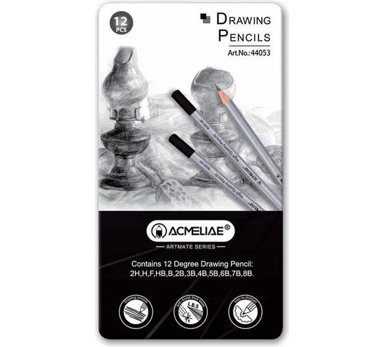 Набор карандашей для черчения твердо-мягких в 12 твердостях: 2H,H,F,HB,B,2B,3B,4B,5B,6B,7B,8B. Высокое качество рисования, эскизов, набросков, скетчей, чертежей любой сложности. Профессиональный проклейка грифеля (корпус с грифелем составляет одно целое) предотвращает его поломки при падении и затачивании. Однородный грифель карандаша не царапает бумагу, оставляет четкие яркие линии, не крошится, затачивается до нужной остроты. Шестигранный корпус легкий, удобно лежит в руке, пальцы не скользят – можно работать без усталости. Корпус из высококачественной древесины ровно и аккуратно затачивается стандартными точилками, не меняет цвет, упругость, не трескается. Длина корпуса 178мм. Диаметр грифеля 2,2мм. Матовая бархатистая лакированная поверхность, серебристый корпус, запаянный верх. Заточенные. Художественные профессиональные карандаши подойдут для студентов вузов, инженеров, художников, архитекторов, чертежников, дизайнеров, художественных студий, школ, колледжей, школьников.