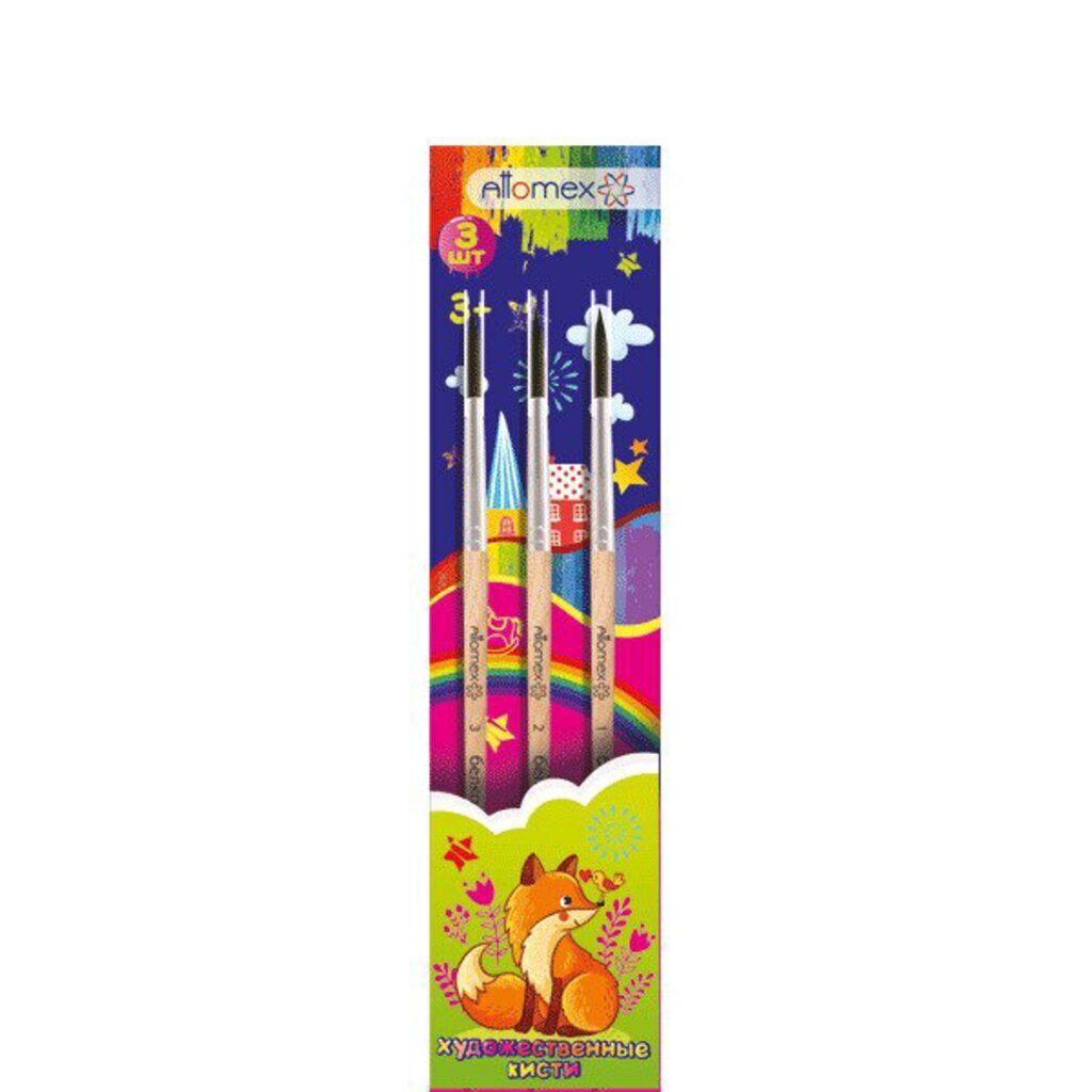 Набор кистей "Attomex" 03 шт (белка 1, 2, 3) деревянная ручка, в пластиковом блистере
