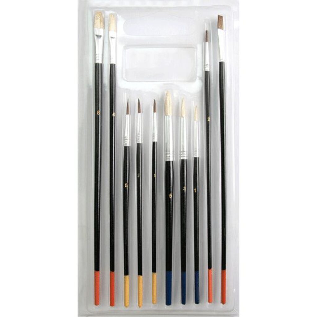 Набор кистей "deVENTE. Art" 10 шт (пони круглые короткие № 1, 3, 5; пони круглая длинная № 2, пони плоская длинная № 4; щетина круглая короткая № 1, 3, 5; щетина плоская длинная № 4, 8) ручки деревянные, в пластиковом блистере