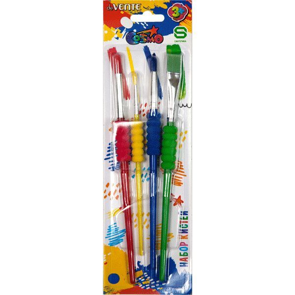 Набор кистей "deVENTE. Cosmo" 4 шт (синтетика круглые № 2, 6, 10, плоская № 12) ручка с эргономичным грипом Soft Touch, окрас волоса, ручки и грипа в ярких цветах, в картонном блистере