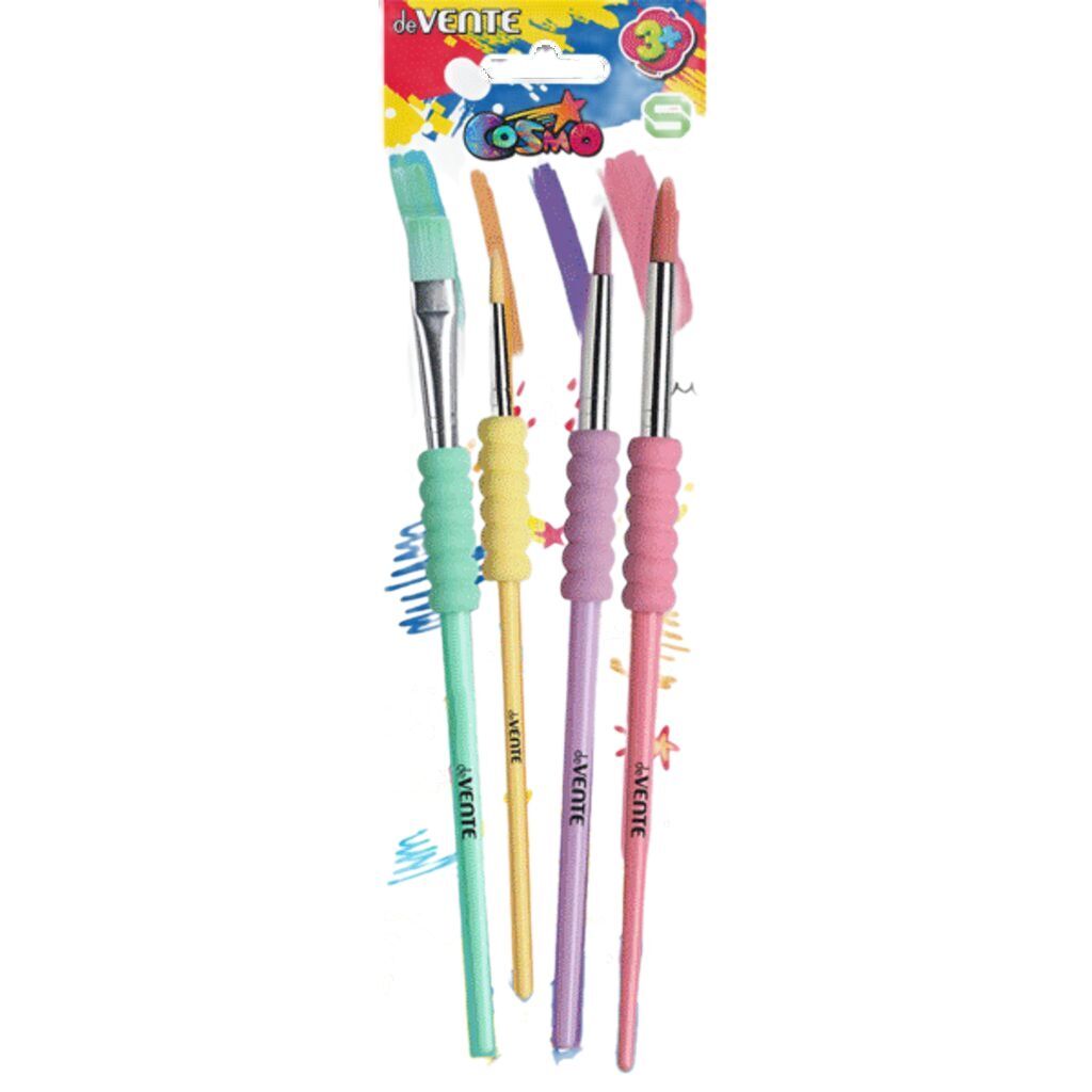 Набор кистей "deVENTE. Pastel" 4 шт (синтетика круглые № 4, 8, 12, плоская № 10) ручка с эргономичным грипом Soft Touch, окрас волоса, ручки и грипа в пастельных тонах, в картонном блистере
