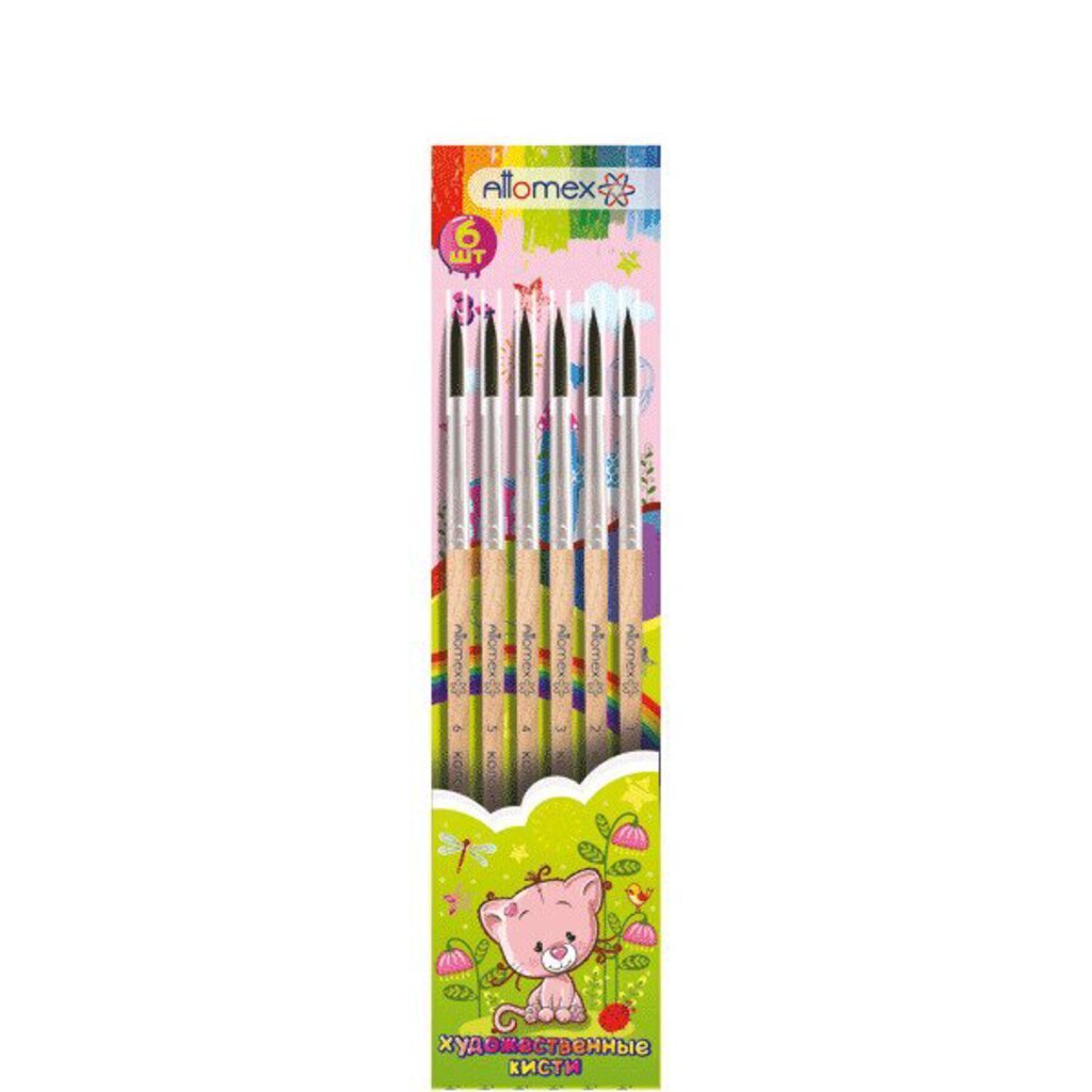 Набор кистей "Attomex" 06 шт (колонок 1, 2, 3, 4, 5, 6) деревянная ручка, в пластиковом блистере