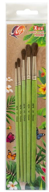 Кисти из волоса пони - самый распространенный вариант для творческих занятий с детьми. Они отлично подойдут для рисования акварелью и гуашью. Мягкий, но плотный волос хорошо впитывает краску и равномерно её отдаёт. Кисти с волосом пони помогут равномерно заполнить фон, нарисовать прямые линии и сделать плавные переходы от тонкой линии и широкой. Форма кисти собирается и выводится вручную. Деревянная ручка тщательно шлифована и пропитана безопасным составом. Кисть удобно и приятно держать в руке. Кисти предназначены для широкого круга потребителей. Пучок кисти: волос ПОНИ Ручка: натуральное дерево, пропитка, зеленый цвет. Обойма: металл, двойная обичайка для прочного соединения частей кисти. Назначение: акварель, гуашь, темпера, акрил, декупаж, батик… В наборе круглые круглые № 1, 2, 3, 4, 5.