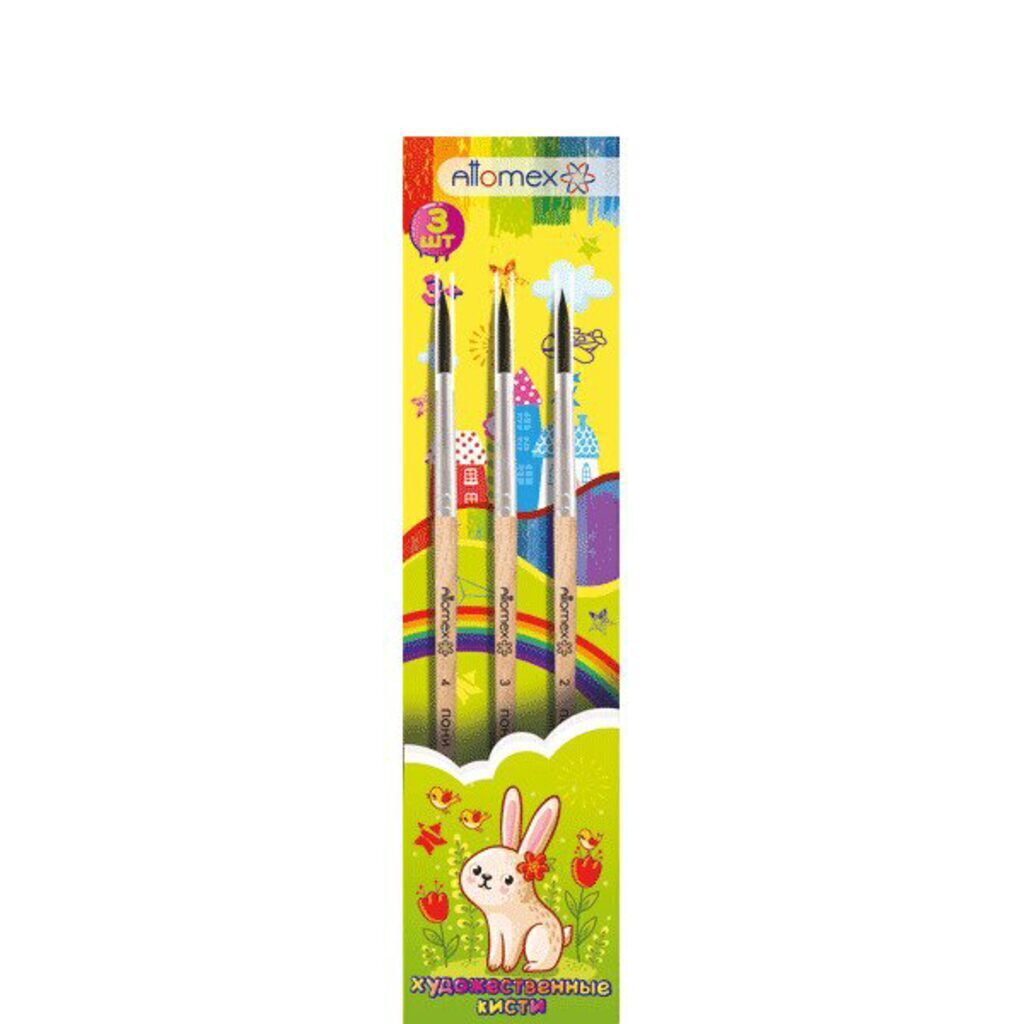 Набор кистей "Attomex" 03 шт (пони 2, 3, 4) деревянная ручка, в пластиковом блистере