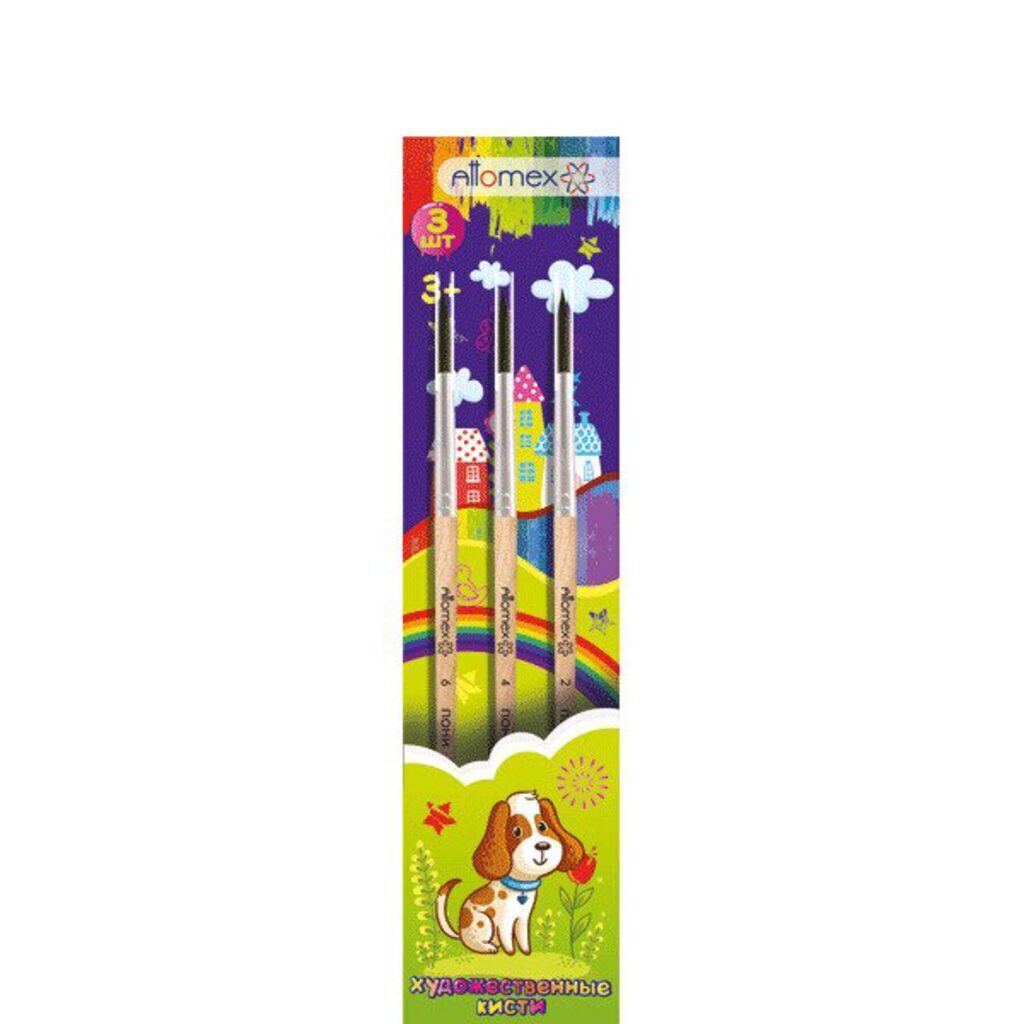 Набор кистей "Attomex" 03 шт (пони № 2, 4, 6) деревянная ручка, в пластиковом блистере