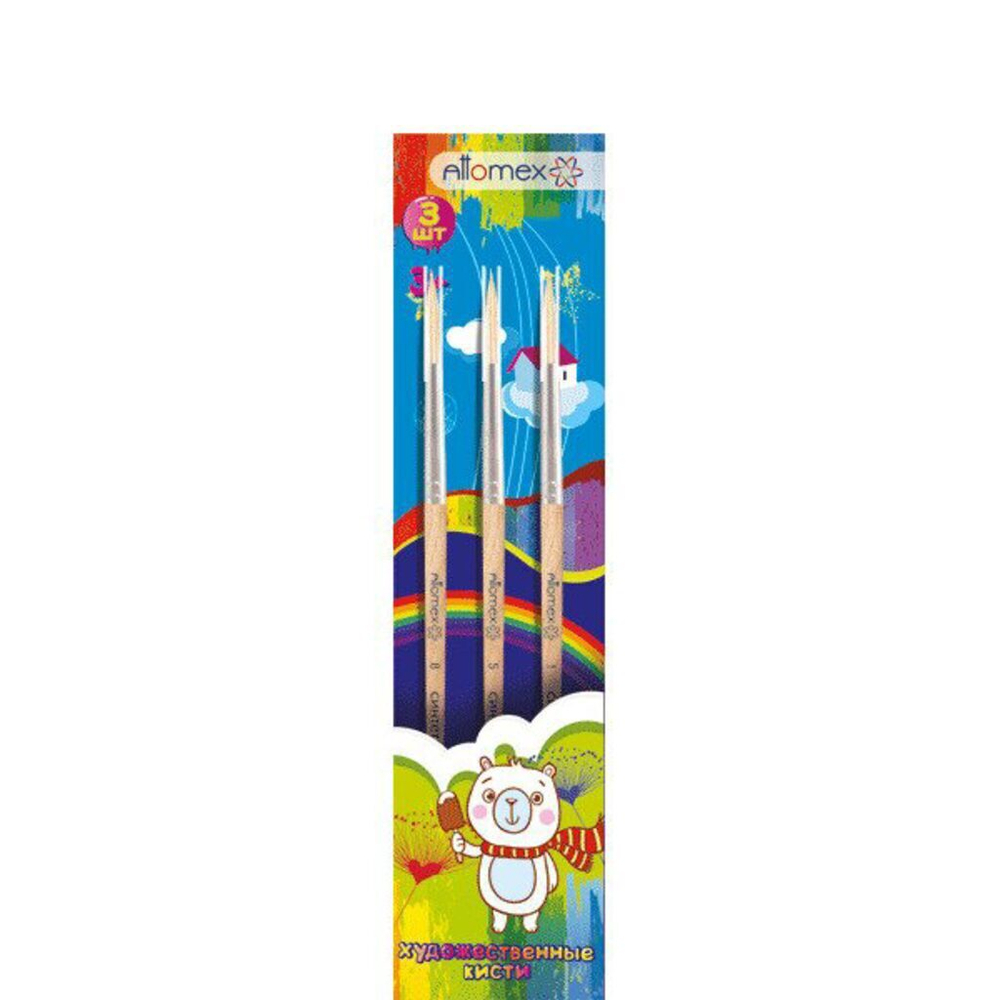 Набор кистей "Attomex" 03 шт (синтетика 1, 5, 8) деревянная ручка, в пластиковом блистере