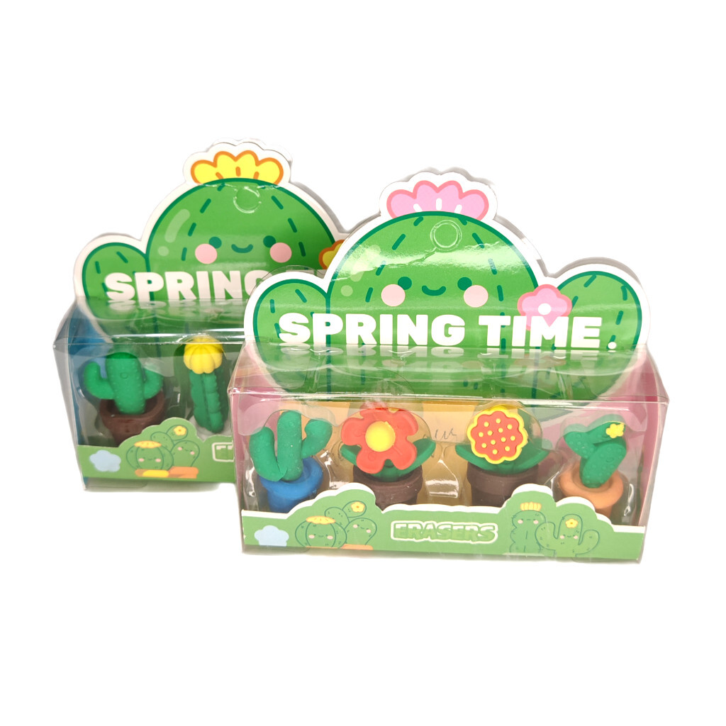 Набор включает несколько разноцветных кактусов-ластиков, что делает его отличным подарком для любителей необычных аксессуаров.