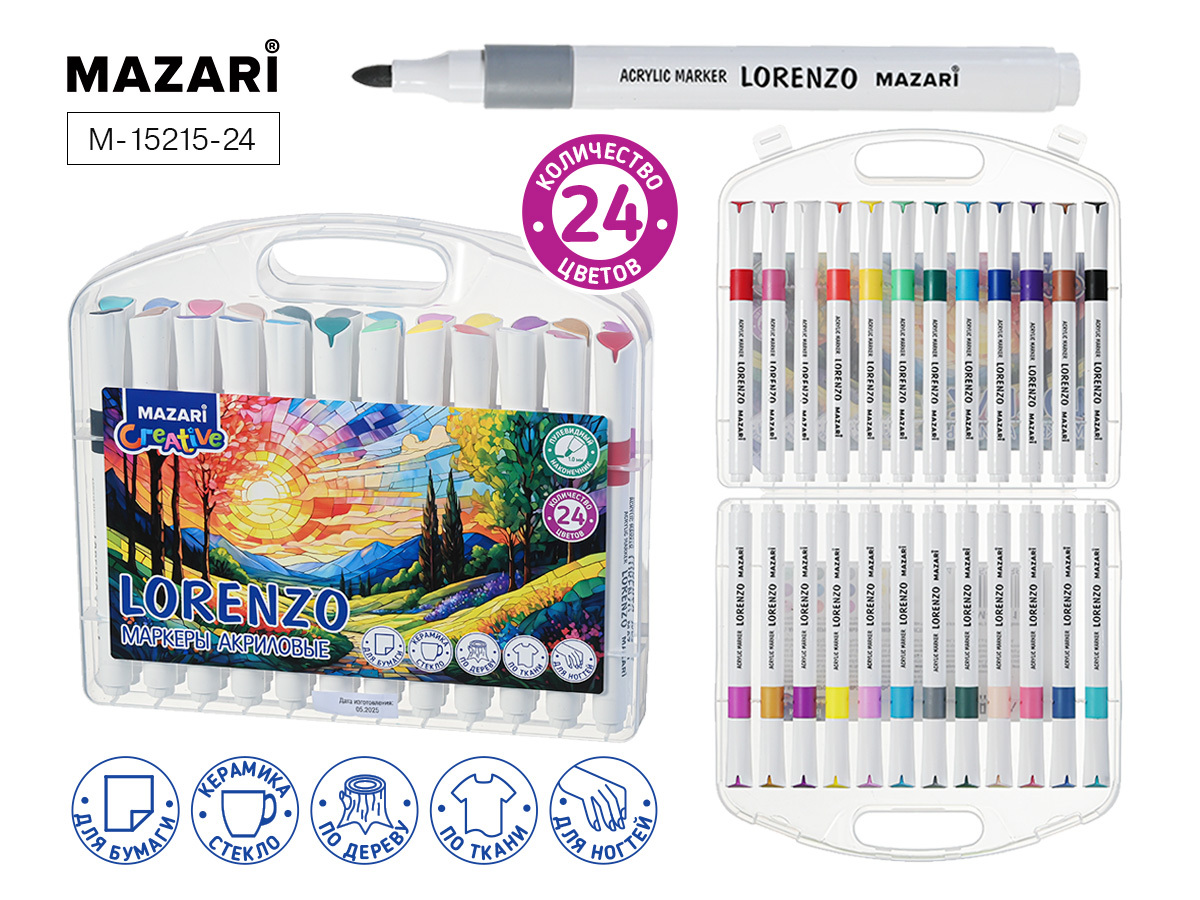 Набор маркеров-акриловых: ваш идеальный выбор для творчества! Данные маркеры имеют водную основу и при высыхании наконечник нужно поместить в теплую воду. Маркеры подходят для рисования по любой поверхности. Маркеры "MAZARI" - идеальный инструмент для иллюстраторов, студентов и всех, увлекающихся творчеством. Используются для создания эскизов, орнамента на кружках, одежде, зеркалах, аксессуарах, текстиле и многом другом, все зависит от Вашего воображения!.