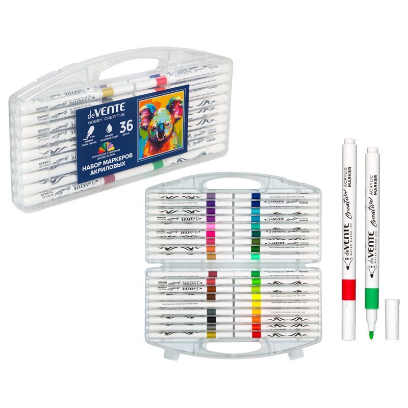 Набор маркеров акриловых "deVENTE. HOBBY CREATIVE. Classic&Pastel" 36 цветов, круглый корпус, пулевидный наконечник, ширина линии 2 мм, в пластиковой коробке