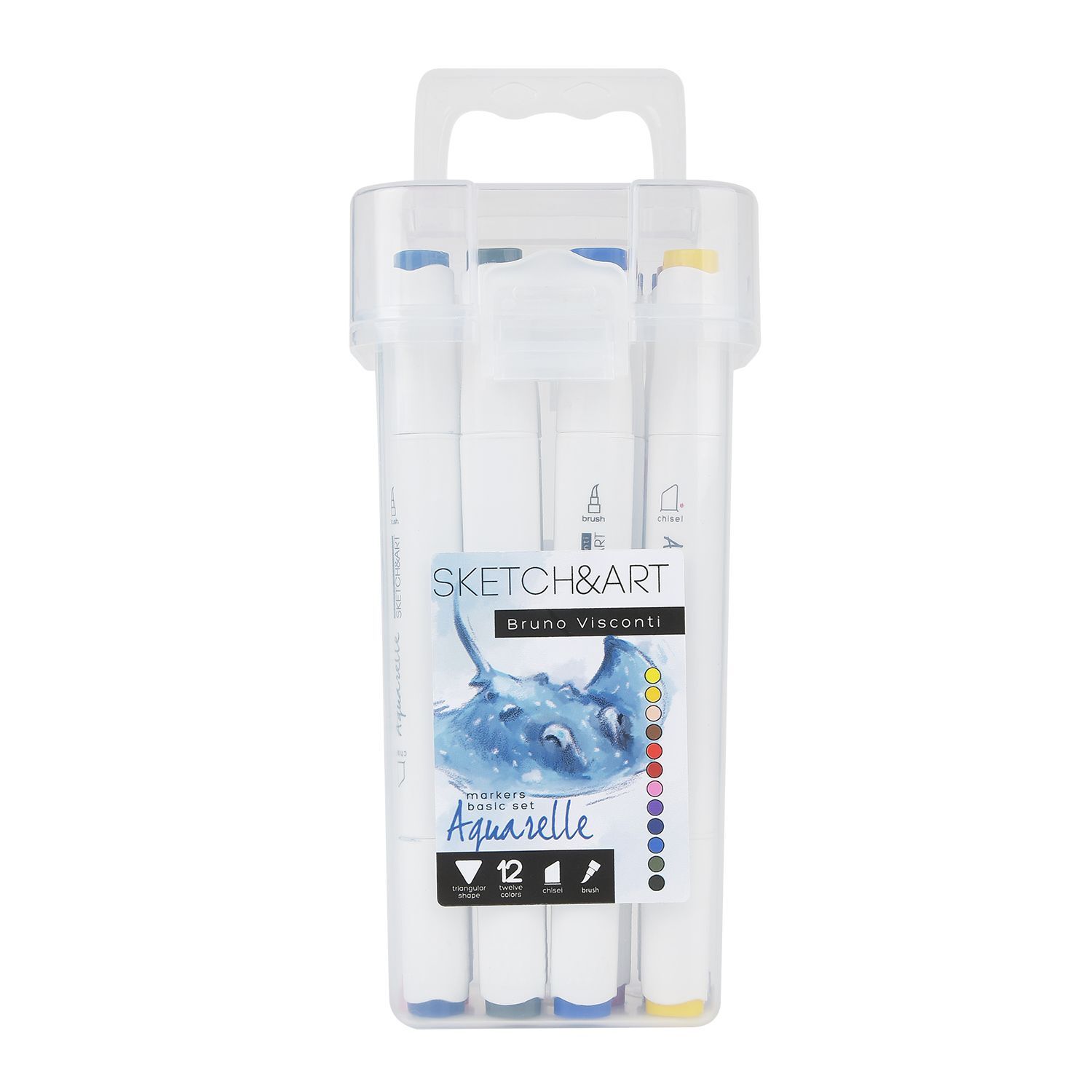 Набор акварельных маркеров "SKETCH&ART" - это безграничные возможности для вашего творчества. В составе набора 12 маркеров, которые имеют сразу два пишущих узла из износостойкого волокна: один - клиновидной формы, другой - в формк кисточки. А это значит, что толщина линии письма может варьироваться от 1 до 7 мм, что идеально подходит для раскрашивания, леттеринга, рисования эскизов, иллюстрирования, работы в смешанных техниках. Яркие, насыщенные цвета легко смешиваются, наслаиваются и размываются водой. Быстросохнущие пигментные чернила на водной основе не имеют запаха.