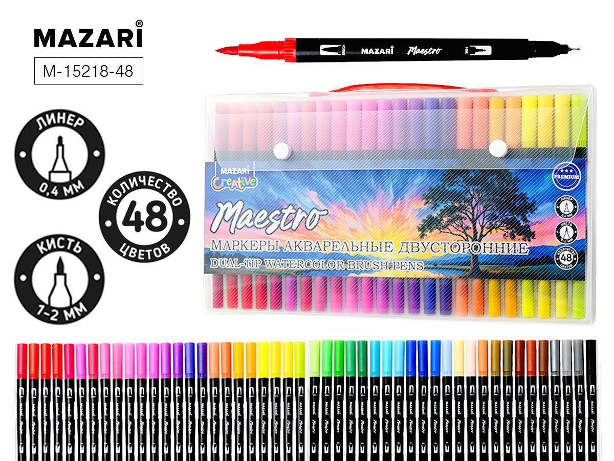 Прекрасно подойдут для детского и взрослого творчества. Набор маркеров акварельных, двусторонние, MAESTRO, 48 цветов, наконечники: кисть и файнлайнер, пластиковый корпус, ПВХ- упаковка с европодвесом