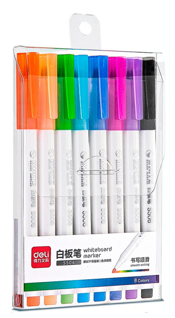 Набор маркеров для досок Deli S504 круглый пиш. наконечник 8цв. ассорти пакет с европодвесом (8шт.)