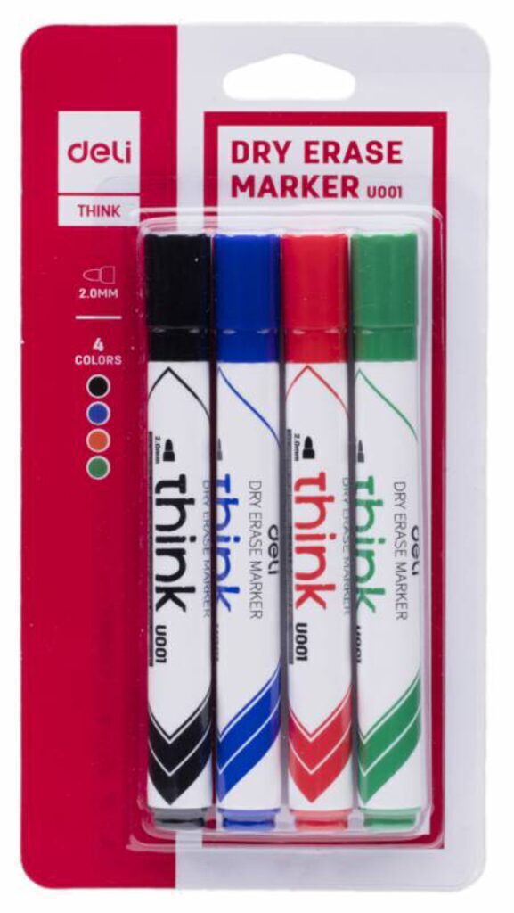 Набор маркеров для досок Deli EU00101 Think круглый пиш. наконечник 2мм 4цв. блистер (4шт.)