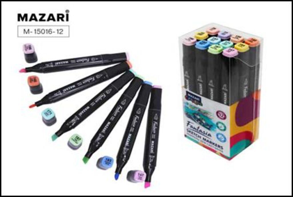 Набор маркеров для скетчинга станет замечательным презентом для всех, кто любит быстро рисовать от руки эскизы, наброски, комиксы, пейзажи. Комплект двусторонних маркеров: состоит из 12основных цветов; упакован в удобный стильный чехол на молнии. С одной стороны стержень маркера имеет пулевидную форму для прорисовки тонких линий , с другой – клинообразную, для нанесения широких штрихов (до 6 мм). Благодаря качественным чернилам рисунок получается чётким и не растекается.