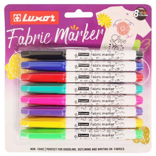 Маркер для ткани Luxor Fabric чёрного цвета идеален для дизайнеров, работающих с текстилем: от хлопковых сумок и футболок, до интерьерных тканей. Цвет автоматически закрепляется через 24 часа или после глажки. Не смазывается при стирке 40°C (в зависимости от типа ткани и содержания натуральных волокон). Ручная стирка должна быть более бережной. Маркер имеет круглую форму корпуса и водостойкие пигментированные чернила на водной основе. Чернила не токсичны, не выцветают после многих стирок. Пулевидный пишущий узел создаёт линии толщиной 1-2 мм. Колпачок имеет пластиковый клип.