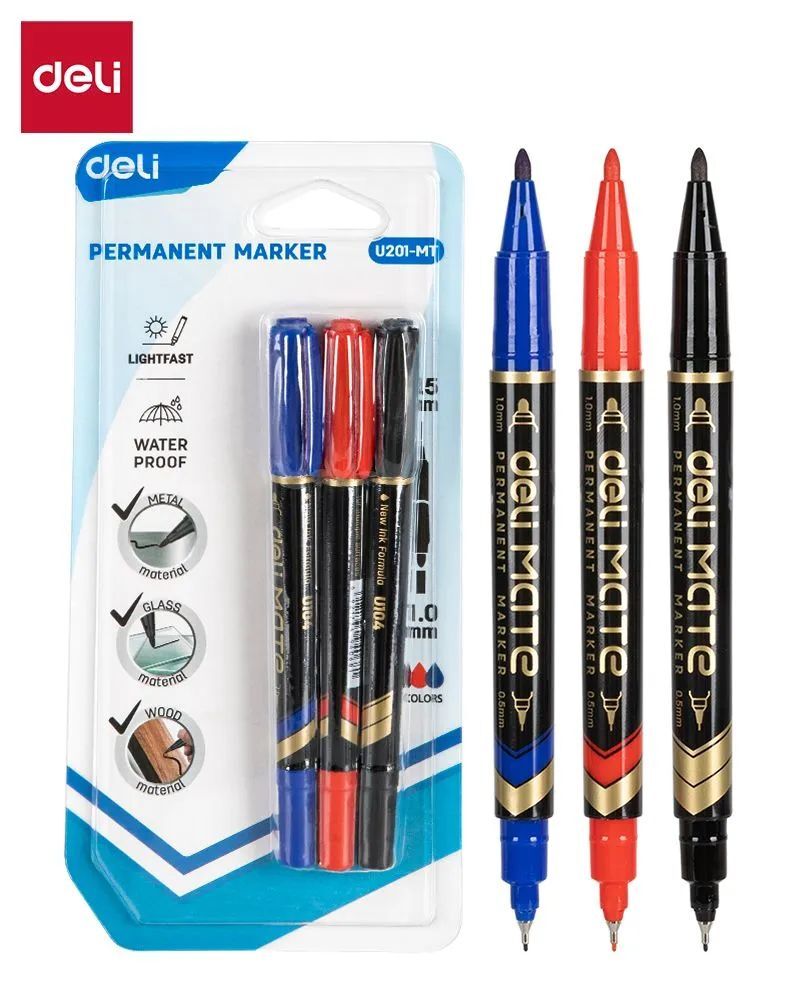 Набор перманентных маркеров, двухсторонний наконечник 0.5мм/1.0 мм, 3 цвета в наборе, блистер