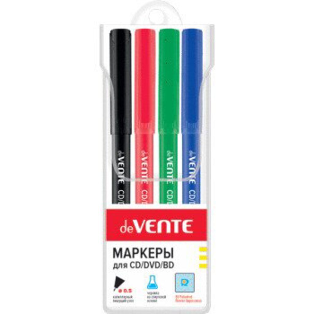 Набор маркеров для компакт-дисков "deVENTE" (04 шт - син., черн., красн., зел.) круглый корпус, с эргономичным трехгранным гриппом, капиллярные 0,5 мм наконечники в металлической обойме, в пластиковом блистере