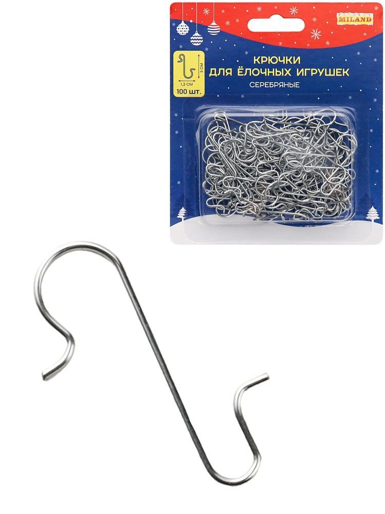 Набор металлических крючков для шаров и украшений 3см, 100шт, серебро