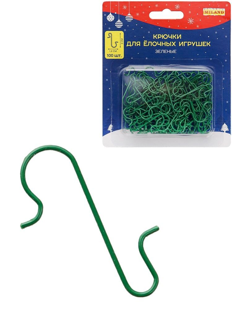 Набор металлических крючков для шаров и украшений 3см, 100шт, зеленые
