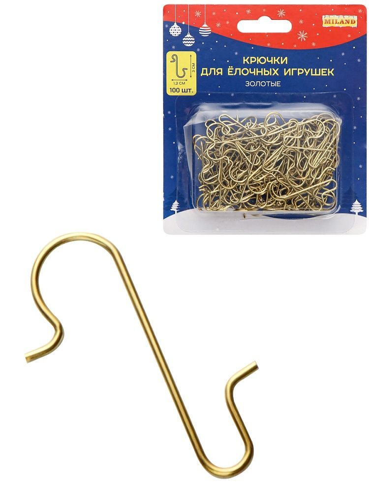 Набор металлических крючков для шаров и украшений 3см, 100шт, золото