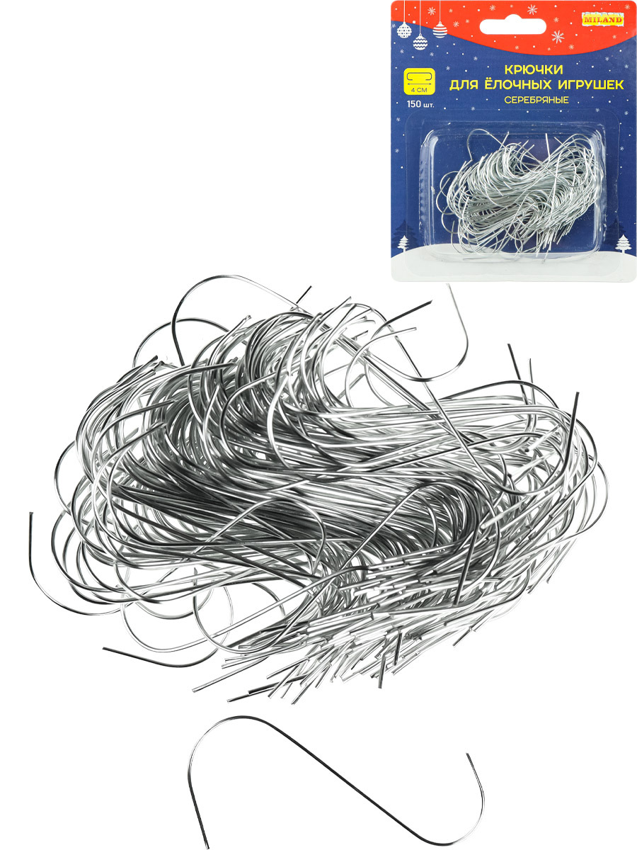 Набор металлических крючков для шаров и украшений 4см, 150шт, серебро