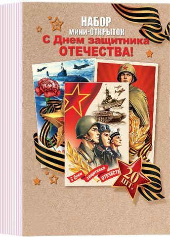 Набор мини-открыток "С Днем защитника Отечества!" 20шт/уп