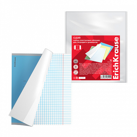 Набор обложек для тетрадей и дневн. (212х347мм), 80мкм, прозрачные (10шт)